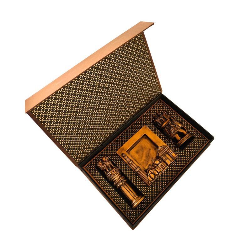 Experience the richness of Bharat, through a representation of its culture and heritage in this elegant and premium gift set.